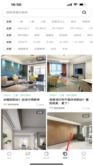 3、案例页可按户型、面积、气概、预算筛选,笼盖客堂、卧室、厨卫等全空间,按照本人的预算,供给海量拆修方案取结果图,感触感染设身处地的感受,